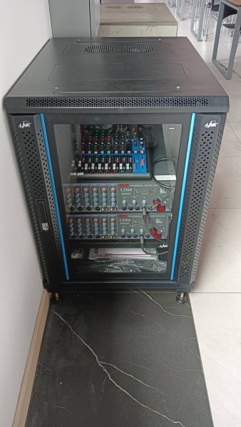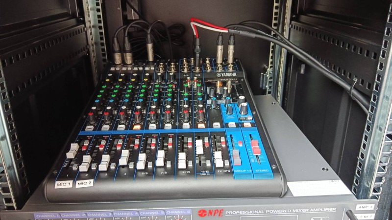 งานติดตั้งระบบเครื่องโรงอาหารและระบบประกาศ พร้อมเชื่อมระบบเสียงตามสายเดิมผ่านสาย Fiber Optic ด้วยชุดขยายเสียงจากแบรนด์ NPE และพลังเสียงจากลำโพง YAMAHA